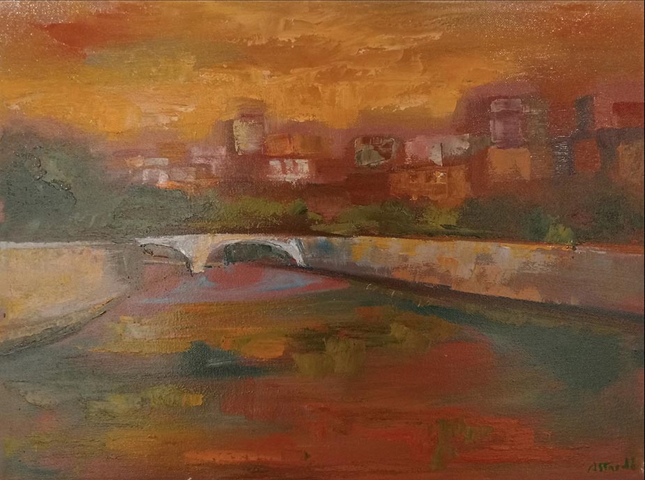 Ugo Attardi, Olio su tela, 30x40cm, Lungotevere, 1990