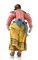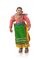 Giovane popolana con gonna gialla e sinale verde camicia arancio, sandali ai piedi. Vestitura con ricami e galloni