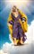 San Giuseppe camicia bianca aperta orlata di merletto, tunica viola, mantello in seta gialla altezza cm 29