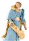 Angelo con tunica celeste profili in merletto, fusciacca e svolazzi rosa
