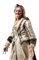 Donna anziana ricca camicia plissettata con merletti, corsetto con ricami, ampia gonna rosa con sopragonna a pieghe con fascia azzurra in vita e marsina in tinta con ricami dorati