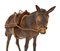 Grande figura di mulo in terracotta policroma, occhi in vetro con basto in cartapesta, cavezza e pettorale di corda e sottocoda a catena cm 22x31x10