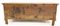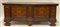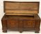 Cassapanca in noce con fronte a pannellature intarsiate in legni vari a motivi