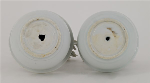 Coppia di vasetti in porcellana blanc de chine a rami di fiori di pruno con uccellini