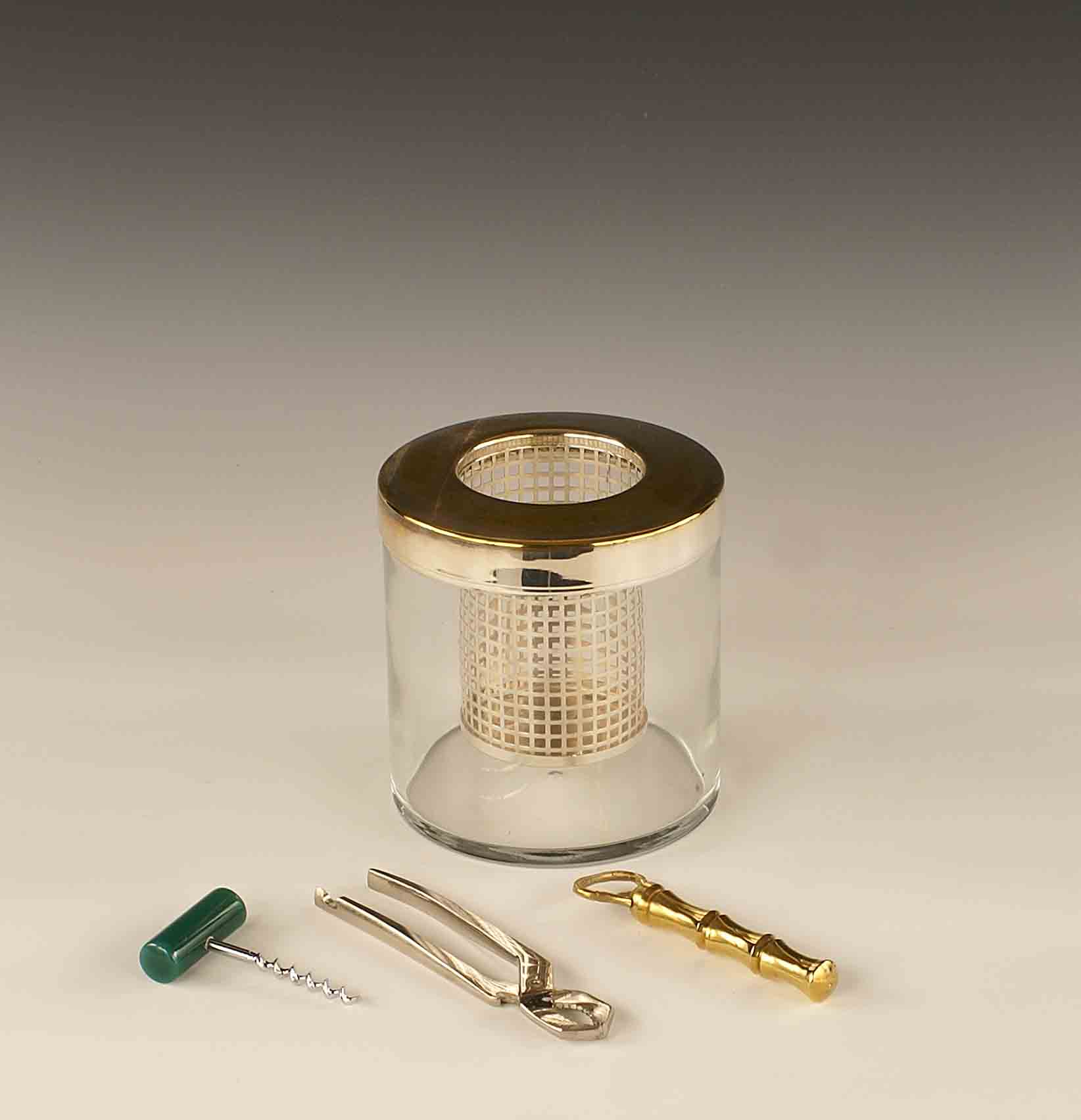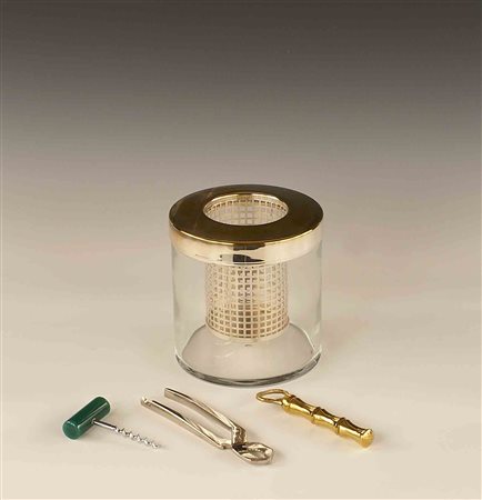 Lotto composto da una glacette in metallo e vetro e tre accessori.