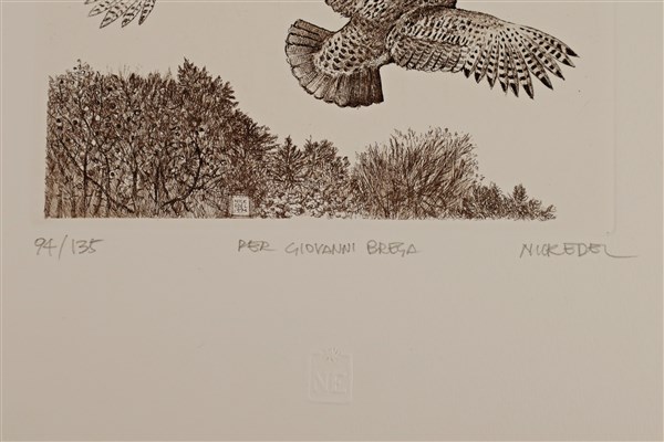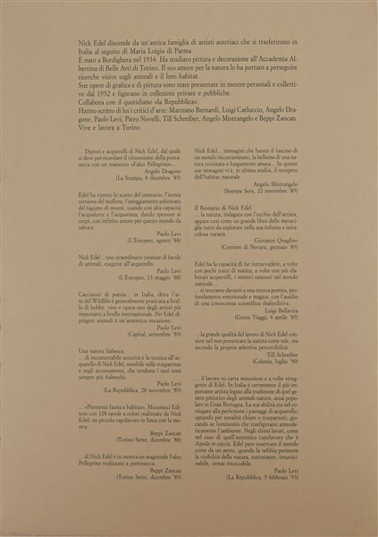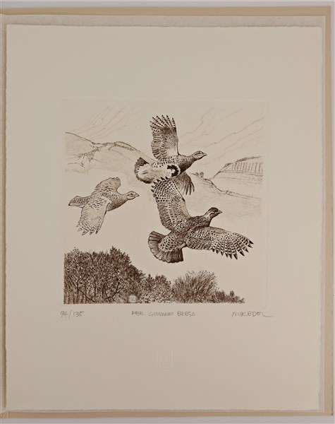 Lotto composto da diverse incisioni a colori raffiguranti anatre e altri volatili e una serigrafia in tiratura limitata firmata Nick Edel, esemplare 94/135 (misure differenti) (difetti)