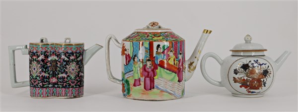 Lotto composto da tre teiere in porcellana Famiglia rosa e Canton Cina, secolo