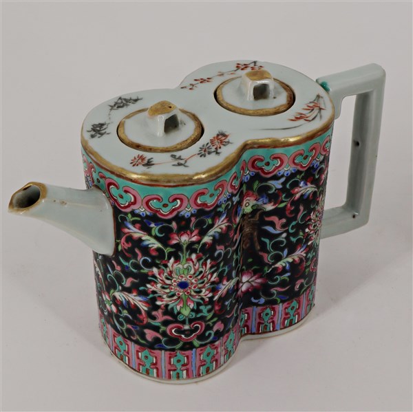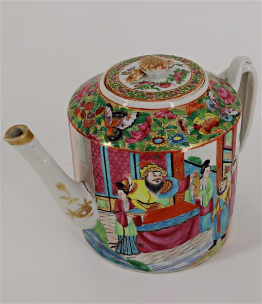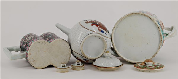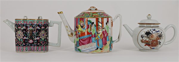 Lotto composto da tre teiere in porcellana Famiglia rosa e Canton