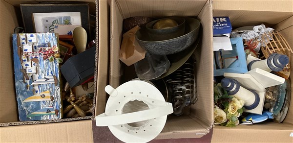 Lotto 1253 | Tre cartoni contenenti numerosi oggetti di diverso uso e decoro (difetti)