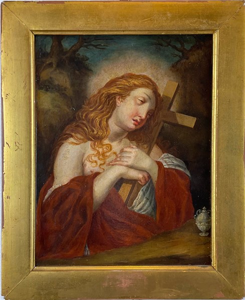 Scuola del secolo XVIII "Maddalena penitente" olio su rame (cm 23x18,5) in cor