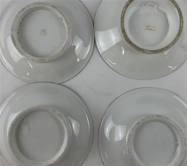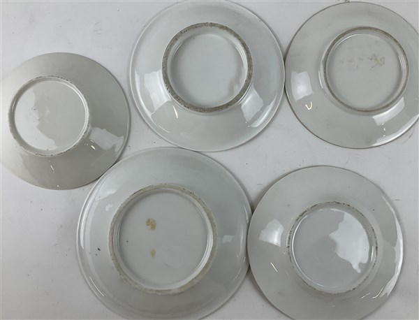 Manifatture diverse, secolo XIX. Lotto composto da nove diverse tazze con piatt