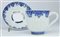 Manifattura di Saint Cloud, prima metà secolo XVIII. Tazza con piattino "trembleuse" in porcellana in parte baccellata e decorata nei toni del blu a motivi vegetali e concatenati (difetti)