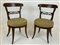 Coppia di sedie in legno tinto con schienale curvato e traversa traforata. Seduta ovale con gambe a sciabola. Secolo XIX (difetti)