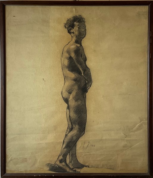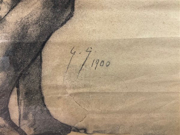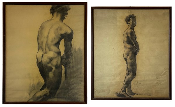 Lotto composto da due disegni a carboncino su carta raffiguranti nudi maschili (cm 54x45 e cm 58x48) uno siglato G.G. e datato 1900. Al retro attribuzione a Giuseppe Graziosi.