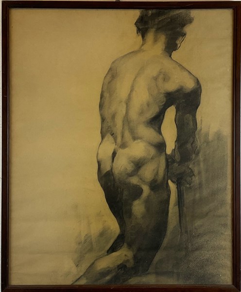 Lotto composto da due disegni a carboncino su carta raffiguranti nudi maschili