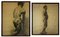 Lotto composto da due disegni a carboncino su carta raffiguranti nudi maschili