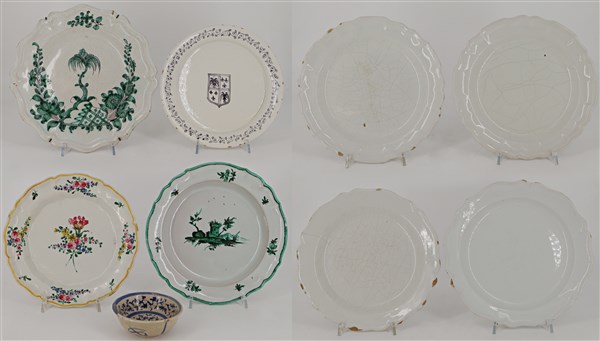 Manifatture differenti, secolo XVIII-XIX. Lotto composto da otto diversi piatti
