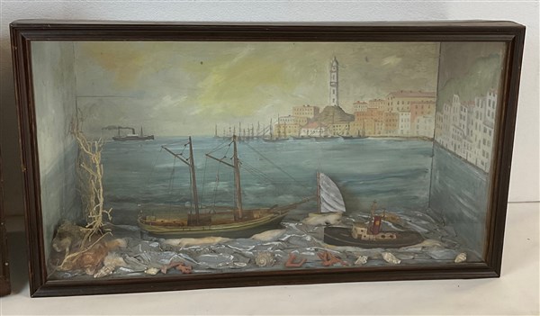 Lotto composto da tre diversi diorama in materiali vari raffiguranti velieri in