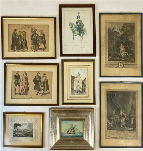 Cartone contenente stampe di diverso soggetto e misura in cornice (difetti)