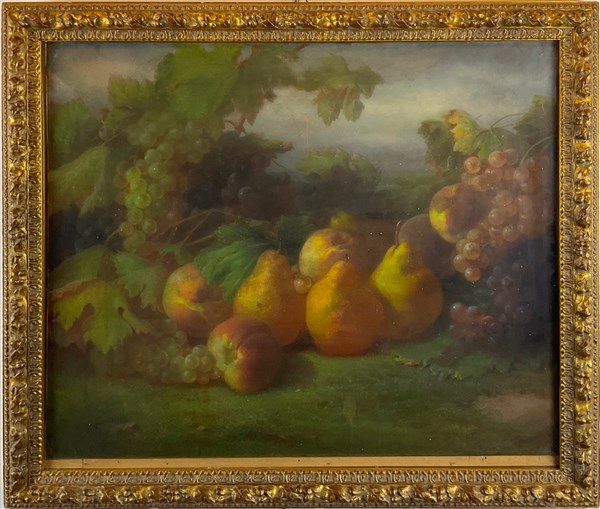 Artista del secolo XIX "Composizione con frutta in un paesaggio" pastelli su c