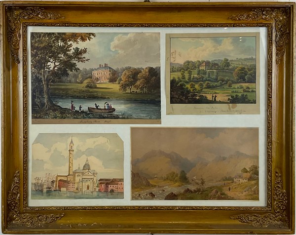 Gruppo di quattro acquerelli del secolo XIX di artisti differenti raffiguranti paesaggi