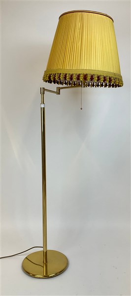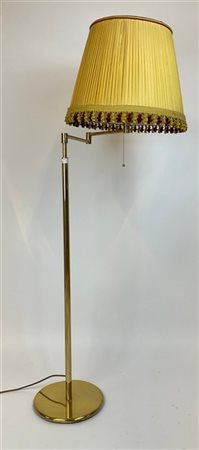 Lampada da terra con fusto in ottone e paralume in tessuto (h tot cm 194) (difetti)