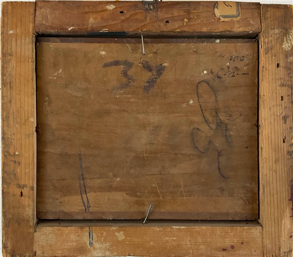 Ignoto, antico dipinto "Scena di genere" olio su tavola (cm 18x22) in cornice