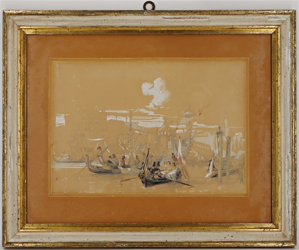 Lotto composto da un disegno del secolo XIX raffigurante "Notabili turchi in barca" ed una composizione moderna di misure differenti