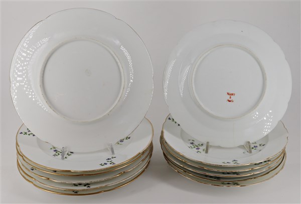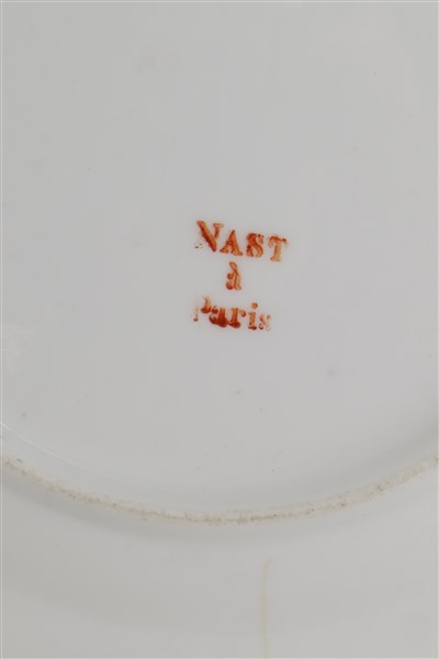 Manifattura Nast, Parigi, inizio secolo XIX. Lotto composto da sei piatti e sei
