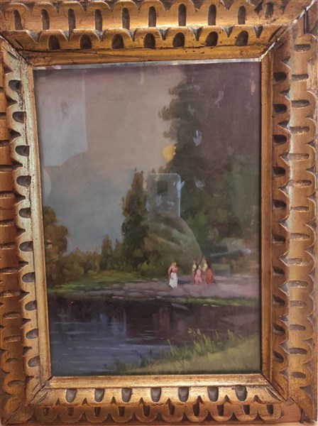 Ignoto di inizio secolo XX "Allo stagno" olio su compensato (cm 33,5x24,5) Re