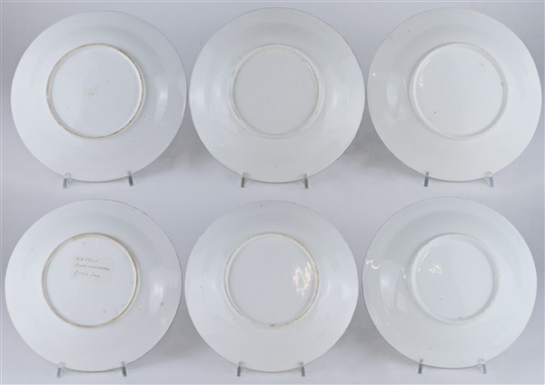 Manifattura di Napoli, inizio secolo XIX. Gruppo di sei piatti in porcellana de