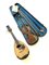 Lotto composto da un violino seriale sassone, fine ‘800, molte fratture nella tavola, tarlo nella tavola e nel manico, giunta del fondo aperta, con un arco seriale tedesco ed un arco per dilruba indiano. Unito a un mandolino di scuola catanese, prima metà ‘900, etichetta Monzino & Garlandini, palette delle meccaniche in osso (due sono mancanti), scollature e parti mancanti nel guscio (difetti e mancanze)
