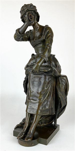 Da Ernest Justin Ferrand "Indiscrète" scultura in bronzo (h cm 42) Firmata al