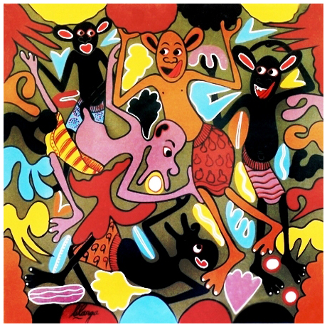 GEORGE LILANGA Kikwetu (Tanzania) 1934 – Dar es Salaam (Tanzania) 2005 Mchezo wa ulimi Olio su faesite 61 x 61. Firma in b. a s.; titolo sul verso. Autentica galleria Rosenfend, Bad Kissingen su foto. Pubbl.: “George Lilanga” cat. mostra a cura di Silvio Guarasci, Saletta Viviani, Pisa, 10 giugno – 30 luglio 2006, p.62.