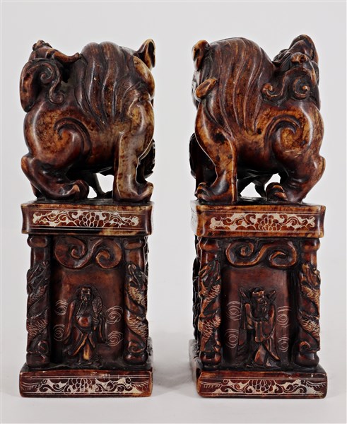 Lotto 1484 | Due sigili in pietra saponaria raffiguranti cani di Pho, entro cofanetto Cina,