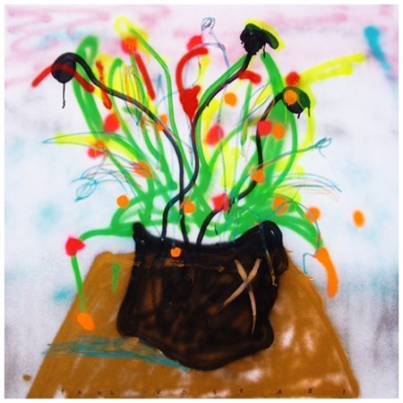 PAUL KOSTABI Whittier (USA) 1962 Live painting 3 2009 Acrilici e t.m. su tela 100 x 100. Firma in b.; sul verso firma e titolo. Autentica dell’autore su foto. Opera realizzata durante la performance live del 24 ottobre 2009 presso la Saletta Viviani di Pisa. L’opera è corredata da alcune fotografie dell’autore scattate durante l’esecuzione.
