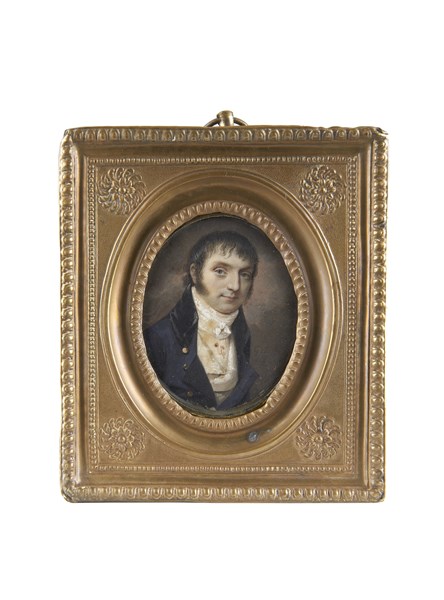 Miniatura ovale su avorio (cm 6,3x4,8) firmata e datata a destra "G V D Berg f 1801". In cornice rivestita in metallo dorato (difetti)