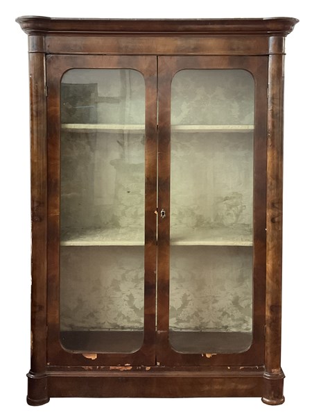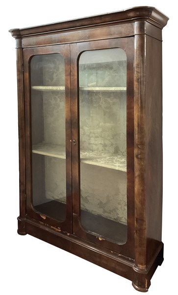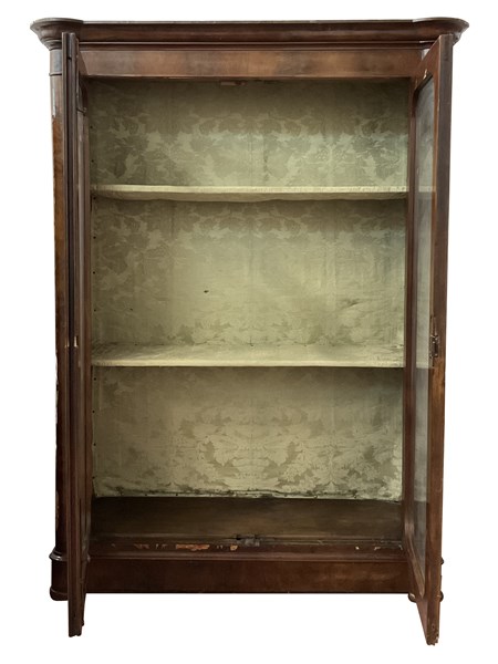 Lotto 1520 | Vetrina a due ante lastronata in piuma di mogano, cappello sagomato, secolo XIX