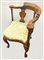 Poltrona in mogano intarsiata a motivo floreale in legni vari, schienale arroto