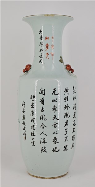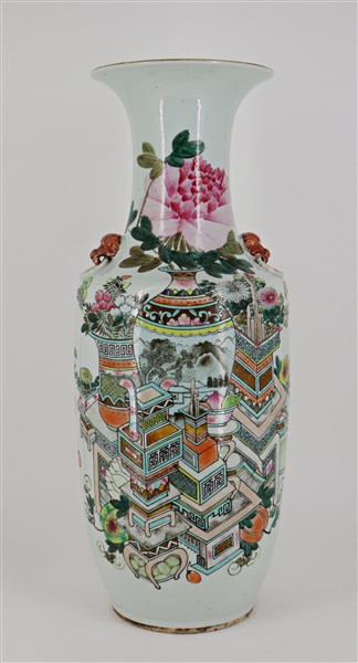 Vaso in porcellana Famiglia Rosa decorato con oggetti e fiori e iscrizioni Cina