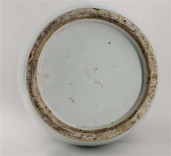 Vaso in porcellana Famiglia Rosa decorato con oggetti e fiori e iscrizioni