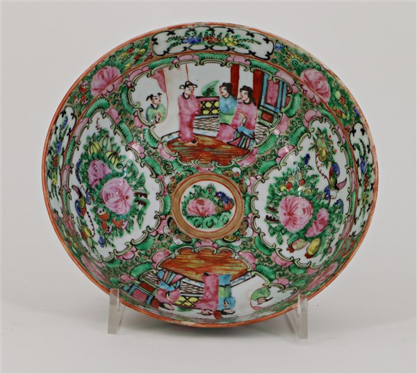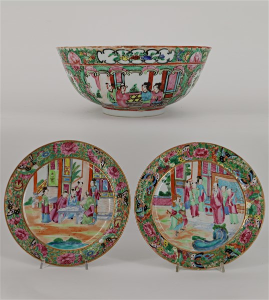 Lotto composto da due piatti e una ciotola in porcellana Canton