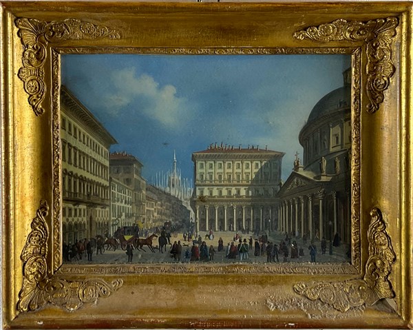 Scuola lombarda del secolo XIX "Corso Vittorio Emanuele" stampa colorata e ri