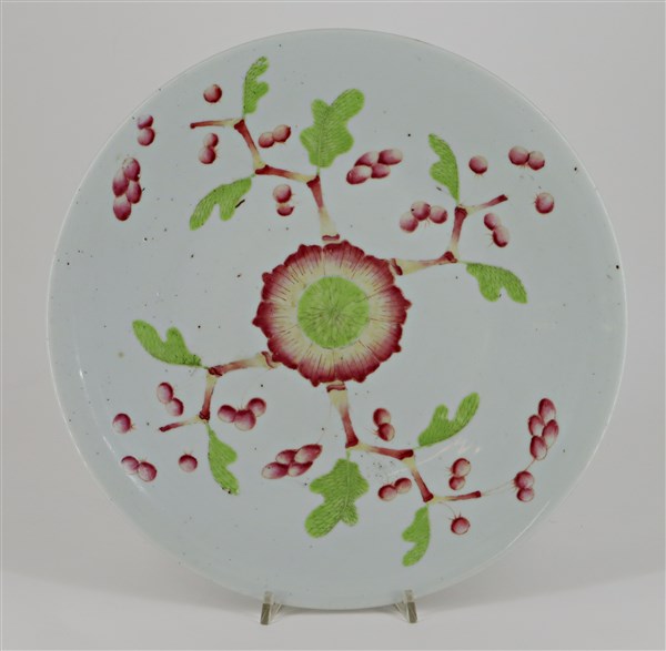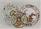 Lotto composto da tre piatti in porcellana policroma con decori vari