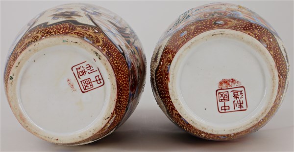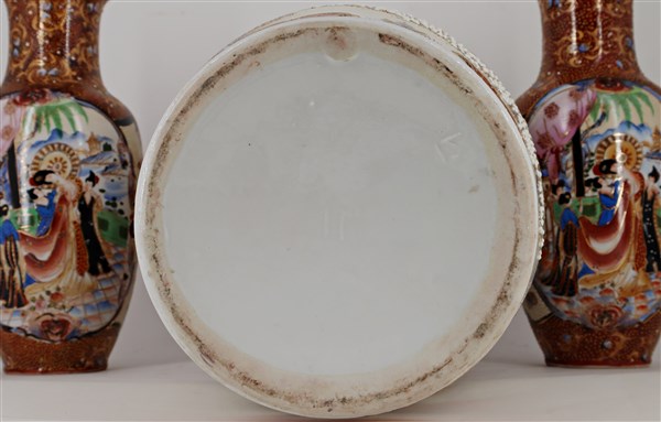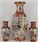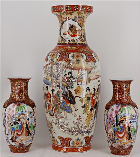 Gruppo di tre vasi in porcellana di misure differenti Giappone Secolo XX (h. c