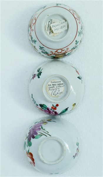 Manifattura di Nove, Bassano, secolo XVIII. Lotto composto da tre chicchere ed