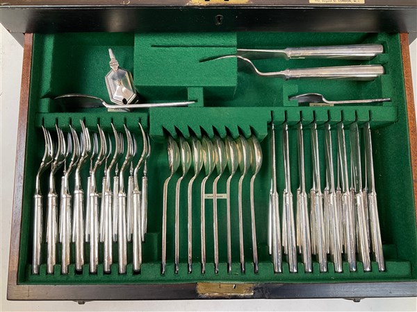 Manifattura Garrard & Co Ltd, Londra. Servizio di posate in metallo argentato c