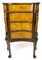 Antico mobiletto intarsiato in legni vari con fronte a quattro cassetti e tiretti segreti nei montanti, gambe mosse (cm 67,5x102x28,5) (difetti)