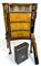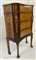 Antico mobiletto intarsiato in legni vari con fronte a quattro cassetti e tiret