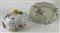 Manifattura Hannong, Strasburgo, secolo XVIII. Zuppiera con coperchio in maiolica decorata a fiori con presa a foggia di limone a tutto tondo unita ad un piatto di analogo decoro, firma della manifattura H con numerali alle basi (difetti e restauri)